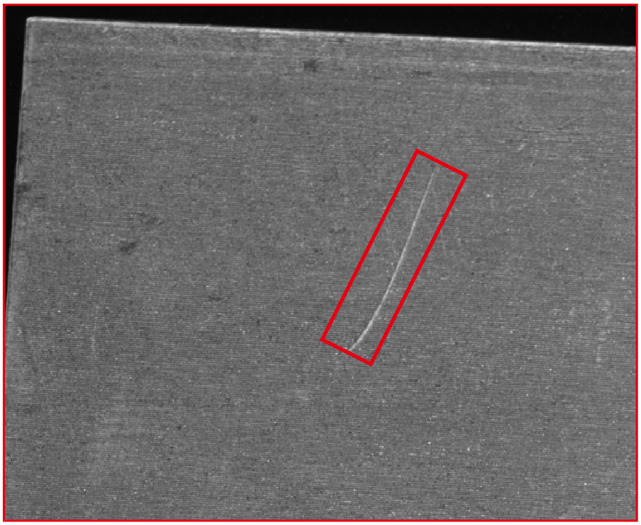 在機器視覺檢測中,線掃應用大大提高了視覺檢測的精度,應對大尺寸產品更具優勢,其中線光源是最常用的光源之一。視覺檢測中均勻性和對比度是滿足檢測需求的必要條件,線掃光源一般增加長度就能達到更好的均勻性,而對比度就需要根據產品的特性來調整光源位置和光照方向使特征凸顯。劃痕類缺陷在檢測中是比較常見的,一般使光照方向與劃痕方向互相垂直就能得到較好效果;而與光照方向平行的劃痕則是不明顯的。線掃光源一般是對著運動方向照射,這種情況下,劃痕類缺陷有些方向就不是特別明顯。