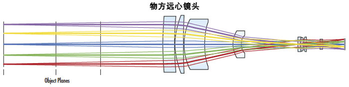 此外,像方遠心鏡頭不會遭受放射性測量的cos4θ衰減,因為光線垂直于整個區域內的傳感器。這是有利的,因為假設鏡頭設計內沒尚未構建選擇性光暈,它能使圖像的相對照明分布更加均勻。像方遠心度并非遠心鏡頭所獨有,因為也可以在傳統鏡頭(如固定焦距鏡頭)中指定像方遠心度。不過,市場上大部分固定焦距鏡頭都未設計為像方遠心,因為它們通常需要額外的元件(因此需要更多成本)來實現遠心度,并且根據所使用的傳感器尺寸,可能需要相當大的直徑。如果非遠心鏡頭是像方遠心,通常會有標注。