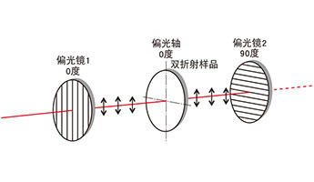 準備標準偏光鏡1(或激光)和偏光鏡2,調整使做為標準的直線偏光和偏光鏡2為消光狀態。