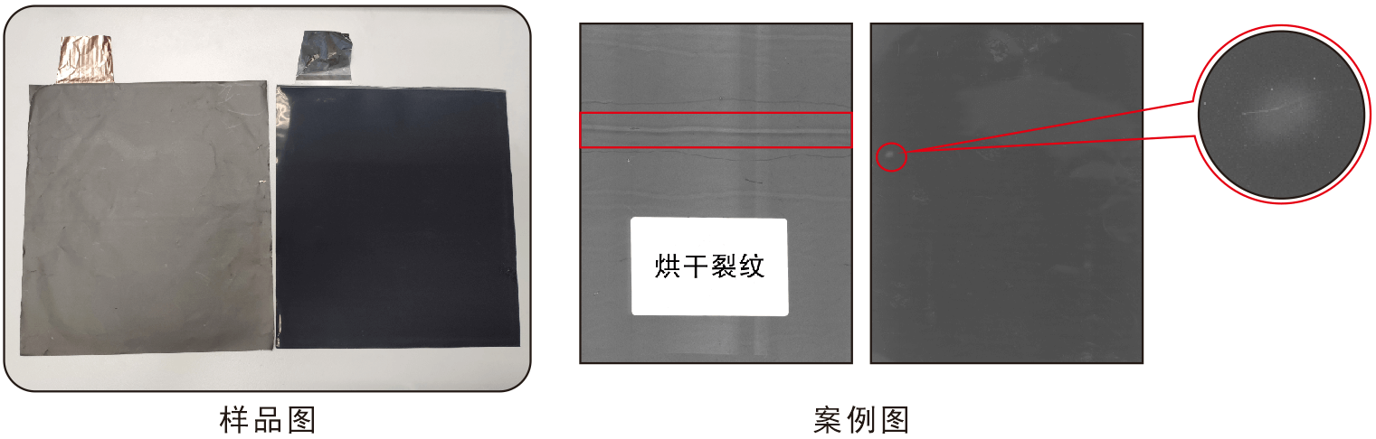 在卷膜材料中容易產生涂膜不良,刮傷、裂痕、多料、少料、雜質等問題,這些不良若流入下一環節,封裝成形后會存在致命的危害,所以表面缺陷檢測在鋰電生產中尤為重要。