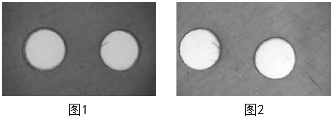 在相同的拍攝條件下,圖1為普通連續(xù)變倍工業(yè)鏡頭拍攝。由于普通鏡頭存在的視覺聚焦誤差,小孔內(nèi)壁易產(chǎn)生陰影,對于提取小孔內(nèi)邊緣造成影響,圖像精度不高。
