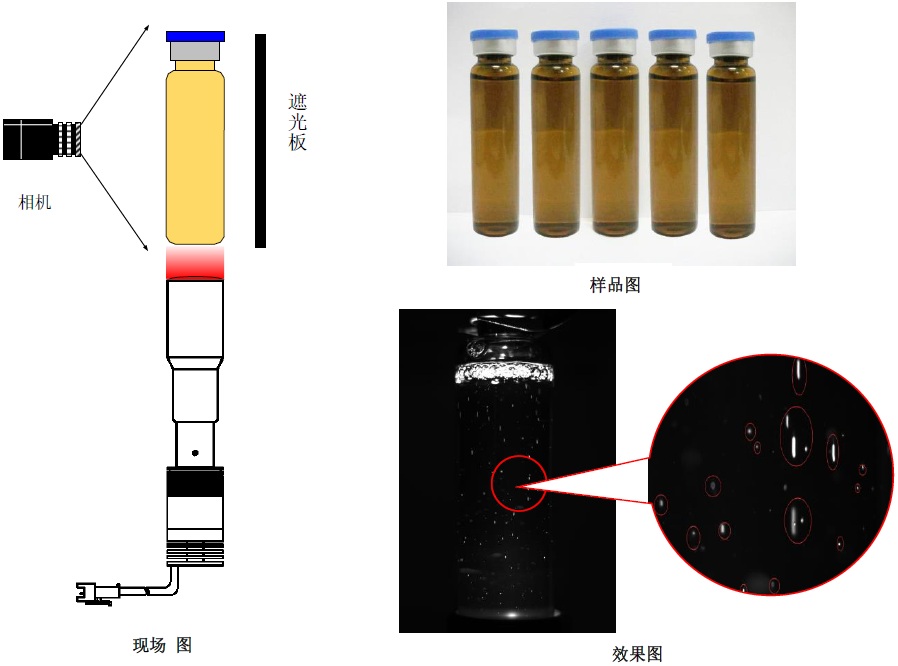 結果: 口服液內部絮狀物、 白點、 白點、 雜質 等不良, 不良, 清晰可見。