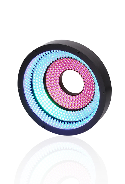 AOI專用光源,采用RGB三色高亮度LED陣列而成,以不同角度及不同顏色照射物體,以突顯出物體的三維信息。通過物體高低差顏色變化的三維特征,來提取的缺陷特征。通常用于檢測PCB板漏件、錯件、偏斜、漏焊、虛焊、多錫、無錫、橋接、極性誤等缺陷。