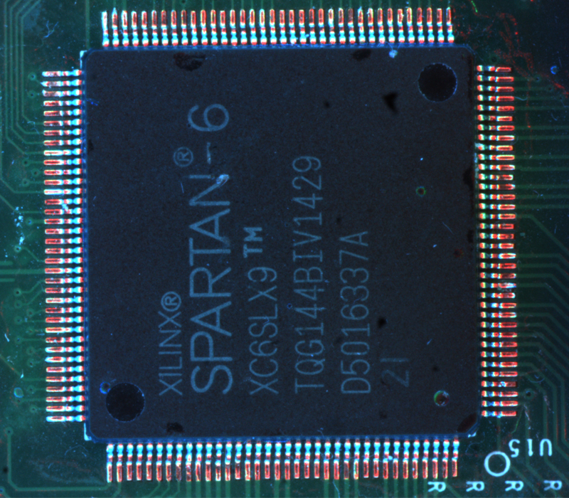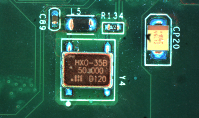 說明:利用焊錫的針腳高低差,通過AOI三種顏色變化來區分很好的效果,同樣利用顏色的疊加,明顯區分出字符。