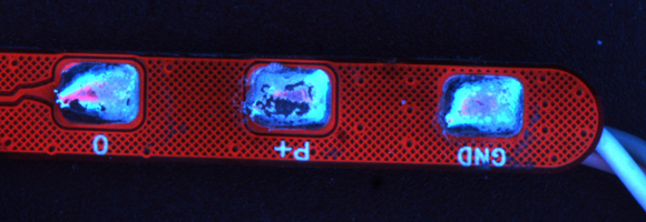 說明:焊錫點檢測,利用對顏色的敏感度以及光源RGB三種LED燈珠的角度,突顯出焊錫部分,使焊錫展現出不同顏色。