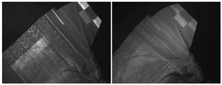 UV熒光圖像在很多應用中都可以使用到,反射UV圖像-沒有熒光-也可以呈現物體的瑕疵。這里,使用反射UV光獲取圖像,用來檢測空氣袋上的產品標簽,增強了對比度。