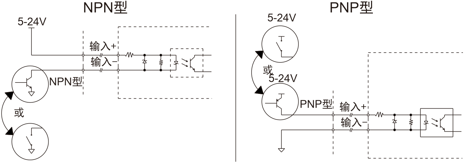 當外部連接觸發信號時,觸發“+”輸入高電平5-24V “-”接地時,光源亮。