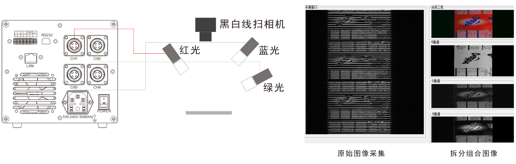 單顆線掃描相機(jī)(單行)獲取多張不同光源的照明圖像