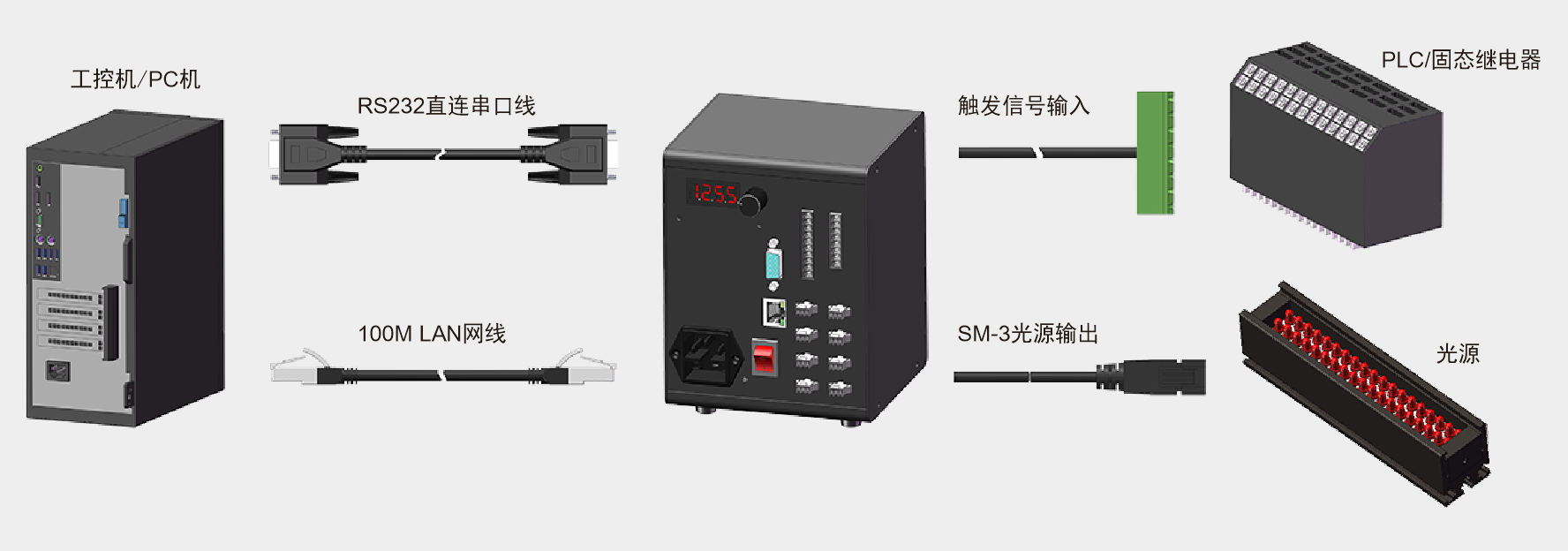 當外部連接觸發信號時,觸發“+”輸入高電平5-24V “-”接地時,光源滅。