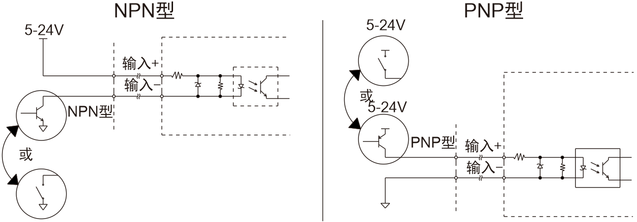 當外部連接觸發信號時,觸發“+”輸入高電平5-24V “-”接地時,光源亮。