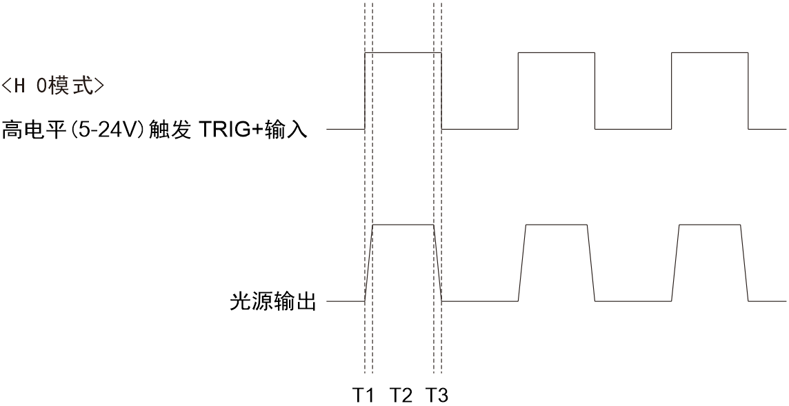 當外部連接觸發信號時,觸發“+”輸入高電平5-24V “-”接地時,光源滅。